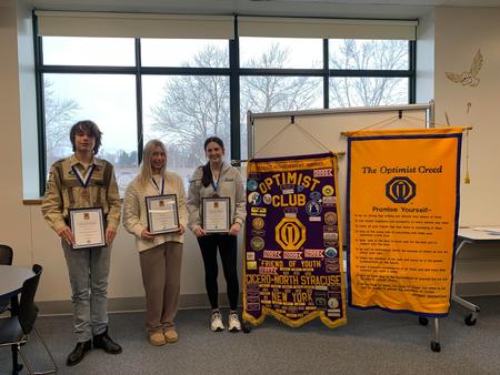 The Cicero-North Syracuse Optimist Club has announced the winners of its 2025-26 Essay Contest, which invited students to reflect on the theme, “How My Acts of Service Help Me Understand What My Community Means to Me.” This year’s first-place winner is CNS Senior Emma Van Beveren. Jillian Bambino (junior) earned second place and Alek Atakan Gulay (sophomore) earned third place. |